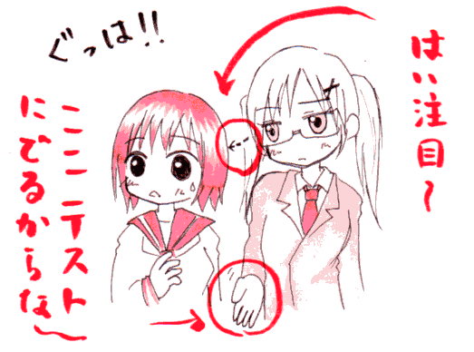 一ちゃんは絶対総司が休んだ日には必死に2人分のノートをとって、次の日なんともなしに無言でノートを差し出してると思います!!総司の「わ~ ありがとう一さんv」を聞きたくて(笑)ノートとっとくのは土方さんには出来ないもんね☆ ちなみに はじめ・総司・平助が1年生/さの・新八が2年/土方・近藤・山南が3年です。